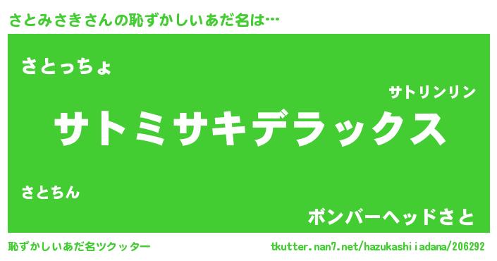 | 男性向けラノベタイトル風あだ名 | 『さとみさき~年齢イコール彼女いない歴の魔法使い~』 |