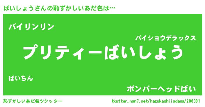 | 意味不明あだ名 | 『ペロリンばいしょう』『自称ばいしょう』 |