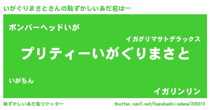 | 伝説のあだ名 | 『不死鳥のスナイパーいがぐりまさと』 |