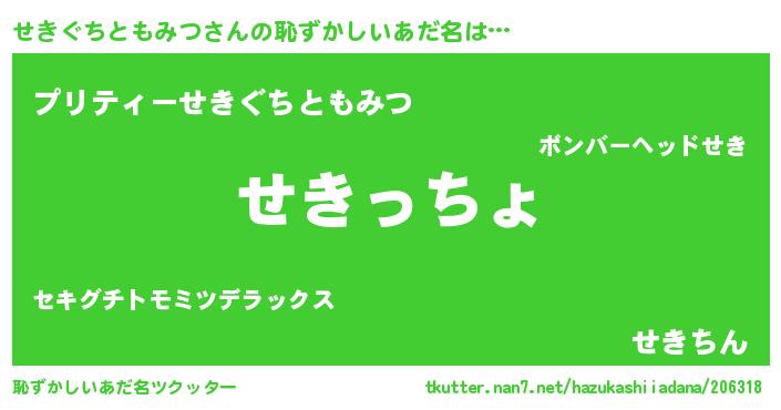| 男性向けラノベタイトル風あだ名 | 『緋弾のセキグチトモミツ』 |