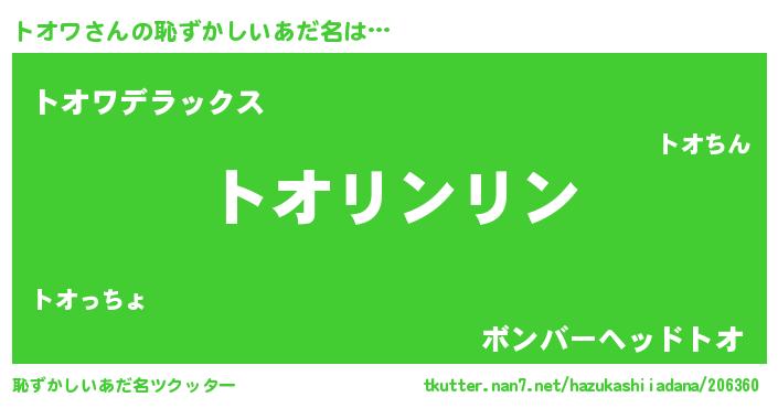 女子向けラノベタイトル風あだ名 | 『トオワは平凡を望む』『闇のトオワ』 |