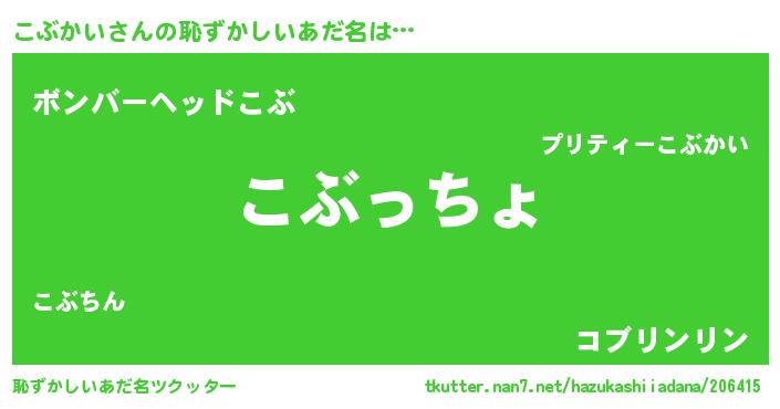 | 男性向けラノベタイトル風あだ名 | 『こぶかいに滅ぼされるだけの簡単なお仕事です』 |