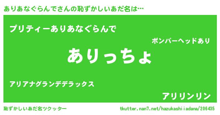 | 意味不明あだ名 | 『ありあなぐらんでフォーエバー』 |
