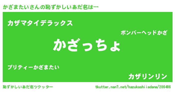 | 男性向けラノベタイトル風あだ名 | 『かざまたい~年齢イコール彼女いない歴の魔法使い~』 |