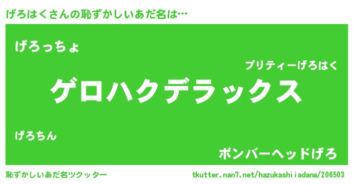 | ヒーロー風カッコイイあだ名 | 『仮面ゲロダー』『ウルトラ戦士ゲロハク』 |