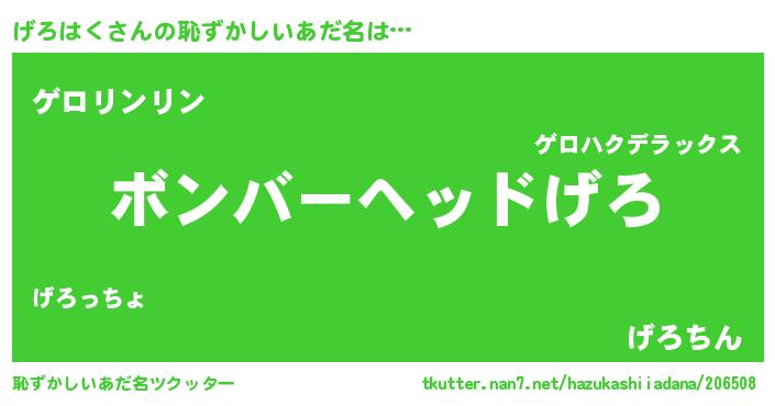 | ヒーロー風カッコイイあだ名 | 『慈愛の使者げろはく』『暗黒騎士ゲロ』 |