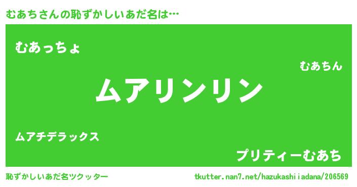 | 女子向けラノベタイトル風あだ名 | 『むあちの玉の輿計画!』 |