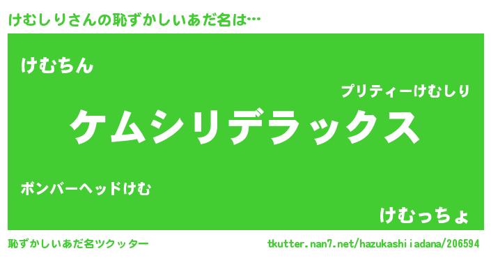 意味不明あだ名 | 『自称けむしり』『永久保存けむしり』 |