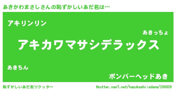 | 男性向けラノベタイトル風あだ名 | 『アキカワマサシスレイヤー』 |