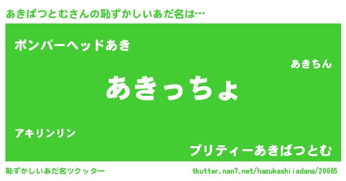 | 意味不明あだ名 | 『あきばつとむフォーエバー』 |