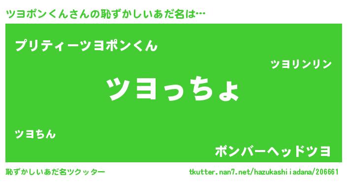 | 意味不明あだ名 | 『ツヨポンくんフォーエバー』 |