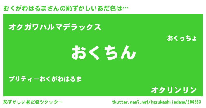 | 意味不明あだ名 | 『永久保存おくがわはるま』 |