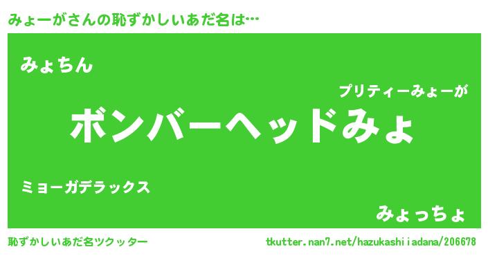 | 意味不明あだ名 | 『住所不定無職みょーが(6歳)』 |