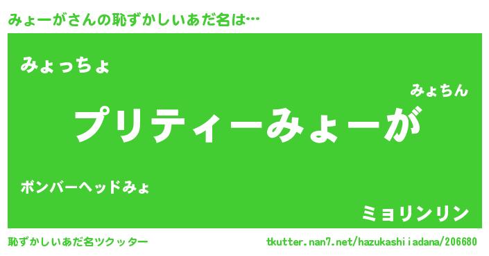 | 意味不明あだ名 | 『ペロリンみょーが』『永久保存みょーが』 |