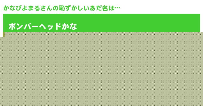 | ヘコむあだ名 | 『かなを』『かなもー』『なまこ酢』 |
