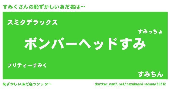 | 意味不明あだ名 | 『眠気覚ましガムすみく味』『自称すみく』 |
