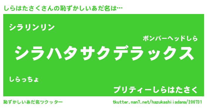 | 意味不明あだ名 | 『自称しらはたさく』 |