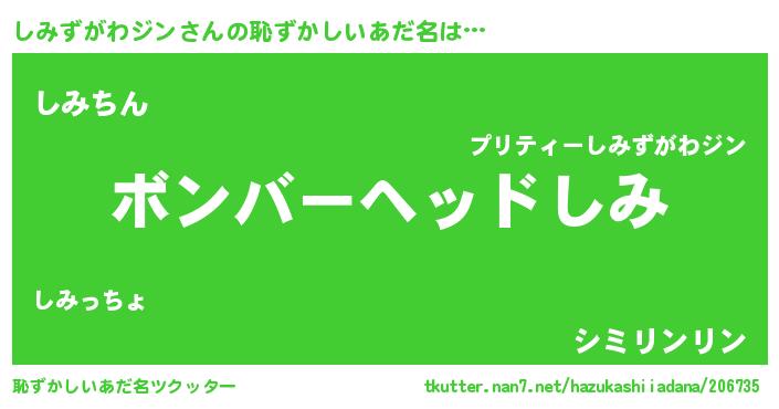 | 可愛いあだ名 | 『しみちゅっちゅ』『しみずがわジンママ』 |