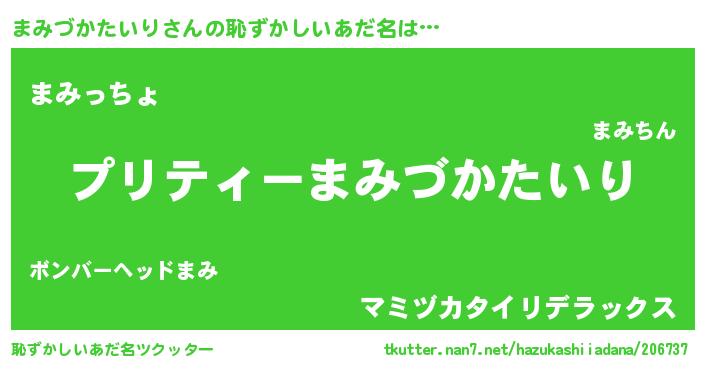 | 胡散臭い通販商品みたいなあだ名 | 『必ず成功する水晶球…その名も「まみづかたいり」』 |