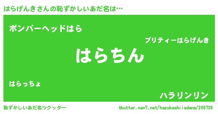 | 意味不明あだ名 | 『永久保存はらげんき』 |