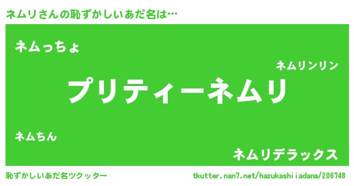| ヘコむあだ名 | 『ネムにゅー』『なまこ酢』『ネムを』 |