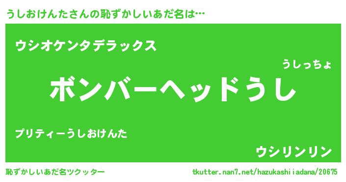 | 男性向けラノベタイトル風あだ名 | 『おまえをオタクにしてやるから、俺をうしおけんたにしてくれ! 』 |