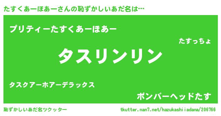 | ヘコむあだ名 | 『たすぷりん』『たすにゅー』 |
