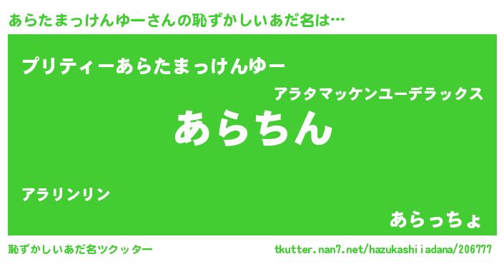 | 意味不明あだ名 | 『永久保存あらたまっけんゆー』 |