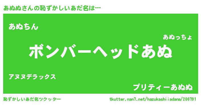 | ヒーロー風カッコイイあだ名 | 『慈愛の使者あぬぬ』『仮面アヌダー』 |