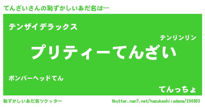 | 意味不明あだ名 | 『なめこ科てんざい属』『自称てんざい』 |