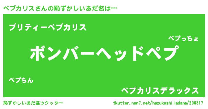 男性向けラノベタイトル風あだ名 | 『うちのペプカリスが世界を掌握している!』 |