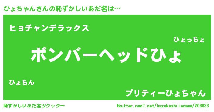 | 欧米人風あだ名 | 『ダニエルひょちゃん』 |
