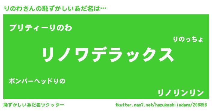 ヘコむあだ名 | 『りのっふぃ~』『りの太郎』 |
