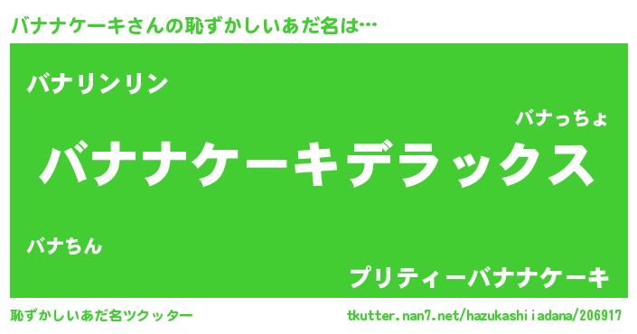 | 男性向けラノベタイトル風あだ名 | 『Re:バナナケーキから始める異世界生活』 |