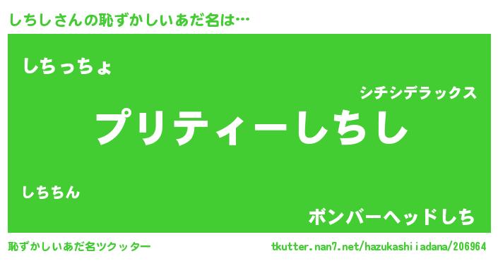 | ヒーロー風カッコイイあだ名 | 『スーパーシチシ』『ウルトラしちしマン』 |