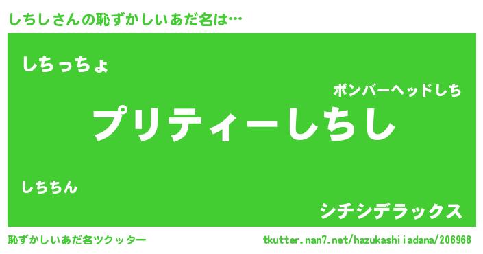 | ヒーロー風カッコイイあだ名 | 『スーパーシチシ』『ウルトラしちしマン』 |