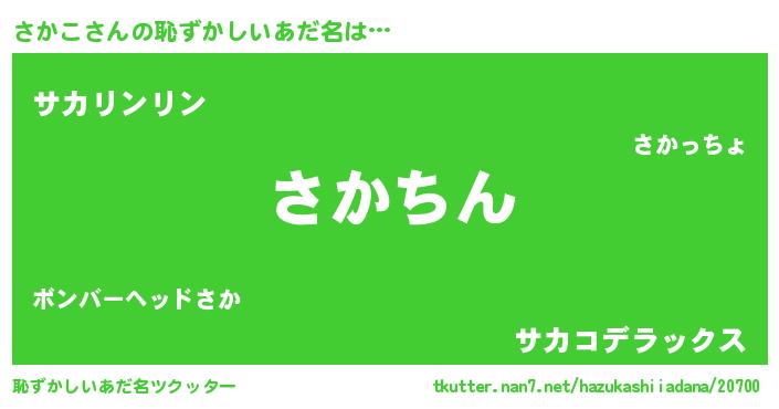 | ヘコむあだ名 | 『さかこ(苦笑)』『さかっ子』 |
