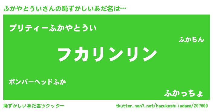 | 意味不明あだ名 | 『とにかく怪しいふかやとうい』 |