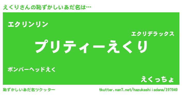 意味不明あだ名 | 『ペロリンえくり』『えくりフォーエバー』 |