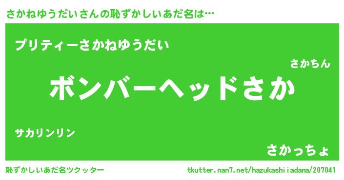 ヘコむあだ名 | 『さかにー』『豆乳』『さかっちょ』 |
