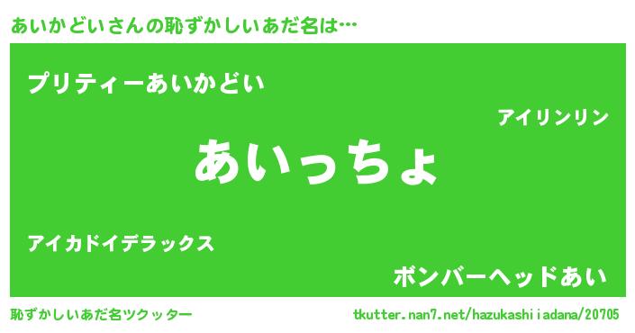 | 男性向けラノベタイトル風あだ名 | 『緋弾のアイカドイ』『あいかどいの憂鬱』 |
