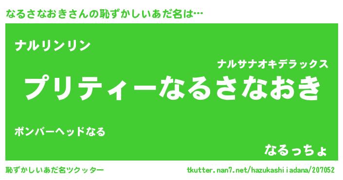 ポケモン風あだ名 | 『ナルチュウ』『ヒナルサナオキ』 |