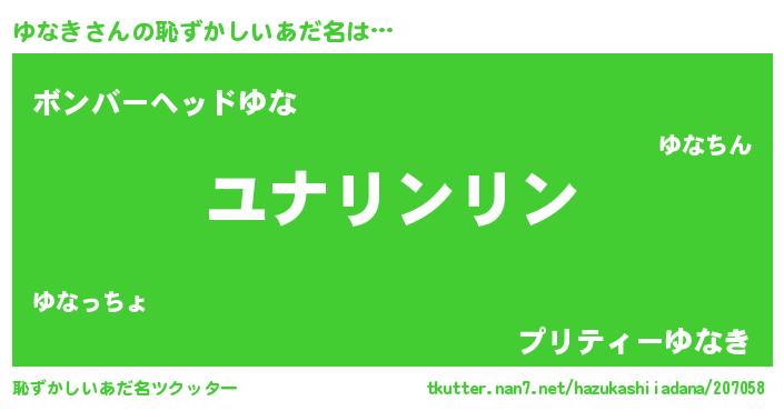 ポケモン風あだ名 | 『ヒユナキ』『ユックウザ』 |