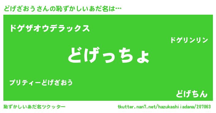 | 可愛いあだ名 | 『どげちー』『どげぷりん』 |