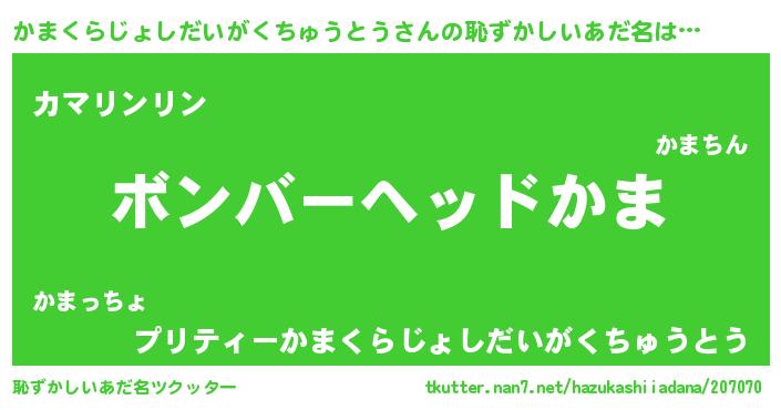 ヒーロー風カッコイイあだ名 | 『正義の使者かまくらじょしだいがくちゅうとう』 |