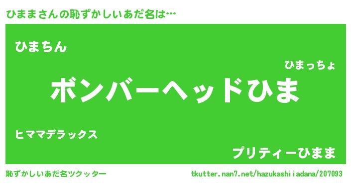 | ヘコむあだ名 | 『ひまま(爆)』『ひまもー』 |
