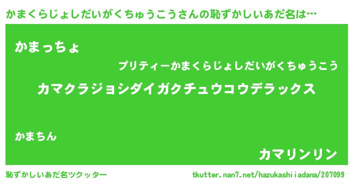 女子向けラノベタイトル風あだ名 | 『闇のかまくらじょしだいがくちゅうこう』 |