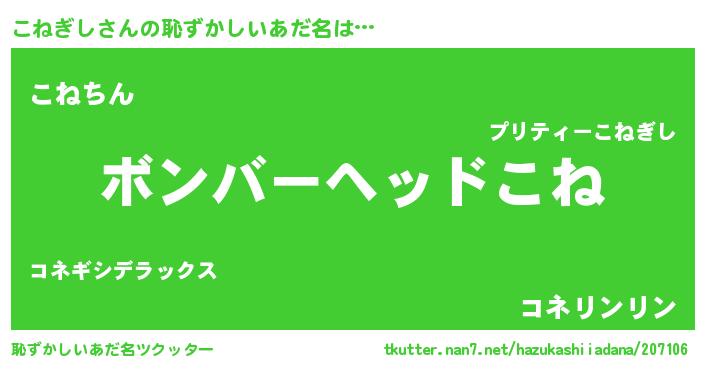 ヘコむあだ名 | 『こねぎし(遠い目)』『こねを』 |