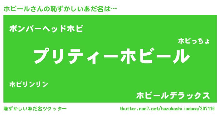 ヘコむあだ名 | 『ホビにゅー』『つくし』『ホビっ子』 |