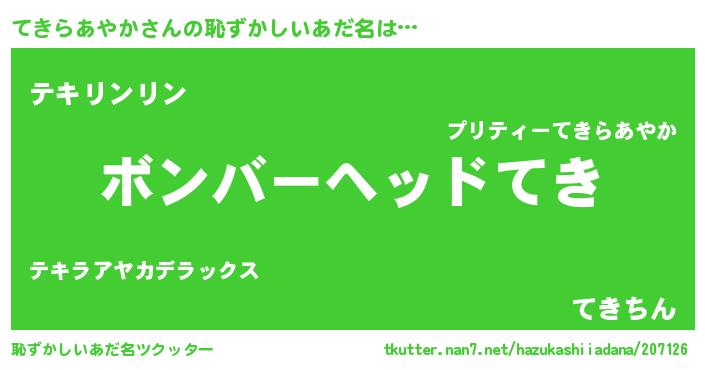 ヘコむあだ名 | 『てきっぺ』『てきらあやか(笑)』 |